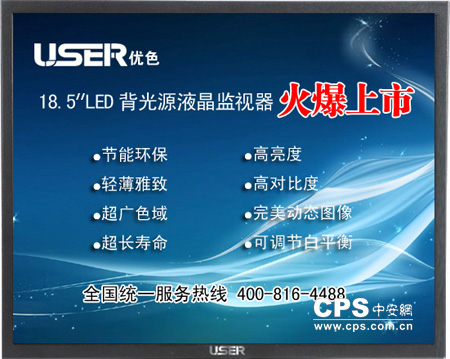 在LED背光液晶监视器的极速发展潮流中,做为液晶监视器老牌企业深圳优色(USER)公司始终坚持走在高端科技前沿,专门成立了LED研发小组,在最短时间内研发出具有划时代意义的型号为US-M1805PE的18.5寸LED液晶监视器,并将在6月底正式推出市场。我们现在来将优色US-M1805PE采用的LED背光技术与传统CCFL背光的做个优劣比较: