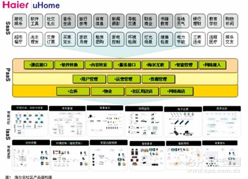 最下面一层“IaaS”基础设施及服务,包括家庭智能化(安防系统、可视对讲系统、智能照明系统等)和社区智能化(停车场管理系统、视频监控系统、一卡通系统等),这一部分是云社区的基础,也是中国智能社区发展二十多年的核心所在。它承担了基础网络、基础设备及智能化系统。但是,智能化系统的发展绝不仅仅是为了“智能”,其最终目的还是要为人们提供安全、便利、舒适的生活服务。所以,各种服务就体现在第三层(“SaaS”软件即服务,最上面一层),它为用户提供生活、娱乐、体育、旅游等各种各样的服务,用户最直接感受到的也是这一层。它把家庭网(小网)、社区网(中网)、互联网(大网)中的各种服务资源全部集中起来,通过海尔app store让用户自由下载,并使用相应的服务。中间层(“PaaS”平台即服务)其实是系统的核心,它一方面承接了来自互联网的各种服务,另一方面把小网、中网、大网的各种服务资源呈现给社区居民。所以,整个系统构成海尔云社区,最终以“服务”的核心理念呈现给用户,而非仅仅是社区的智能化系统。